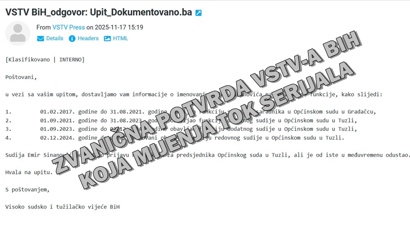 ZVANIČNA POTVRDA VSTV-A BIH KOJA MIJENJA TOK SERIJALA