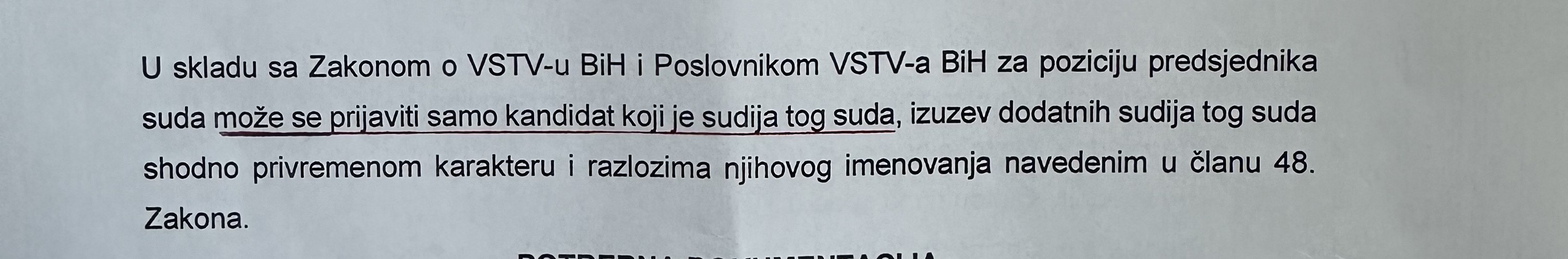 - da u trenutku zatvaranja konkursa nije bio sudija Kantonalnog suda u Tuzli, što je osnovni konkursni uslov i čini njegovu kandidaturu – nezakonitom.